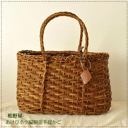 商品サイズ 【あけびホラ編胴張手提かご】 幅約33cm×奥行約11cm×高さ約23cm 約340g/日本製(青森県) ※かごの製作時期により、皮製のタグがつかないことがございます。