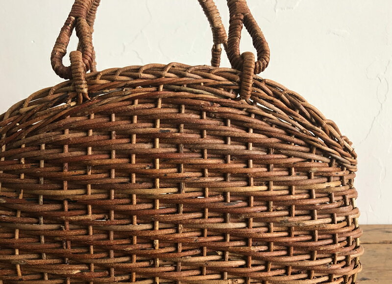 数本の蔓で編み上げられた長めの持ち手は楽に腕を通すことができます。
